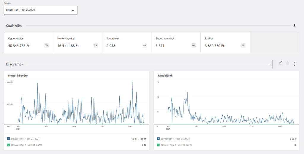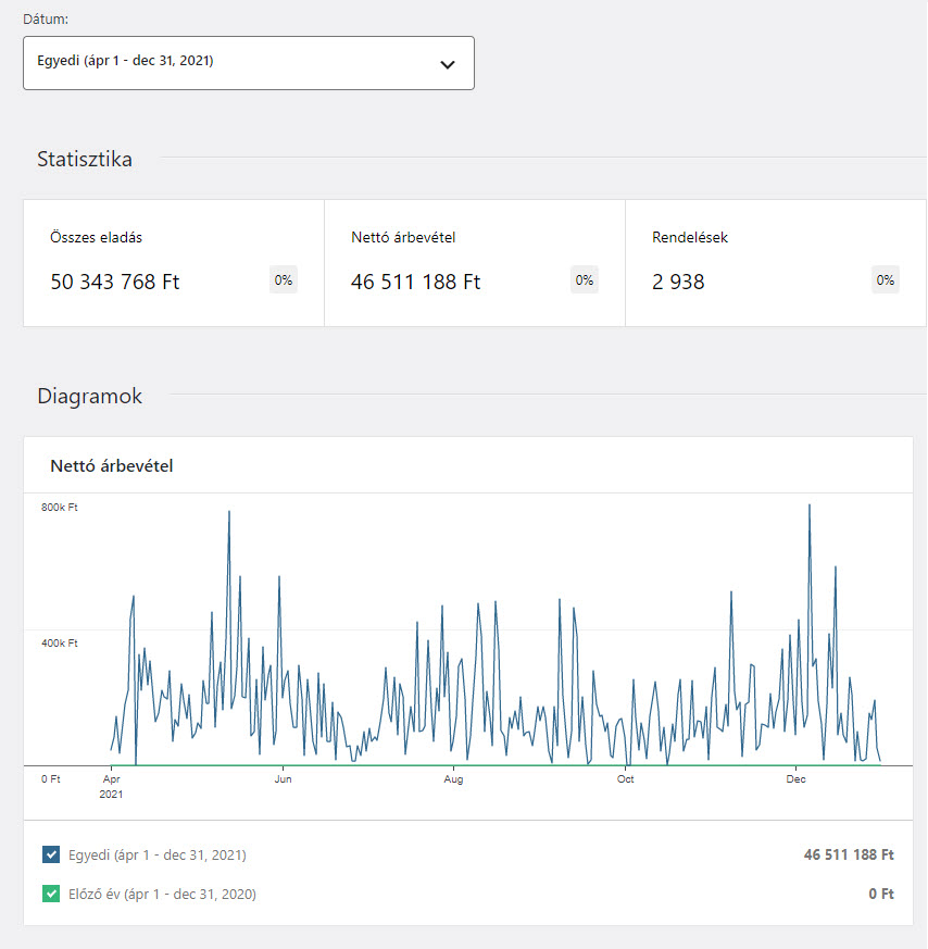 A lenti képen egy ügyfelem általam készített webshopjának tavalyi statisztikája látható. A teljes forgalom több, mint 50 millió forint volt 8 hónap alatt, tehát működő rendszereket építek, és ezt is oktatom.